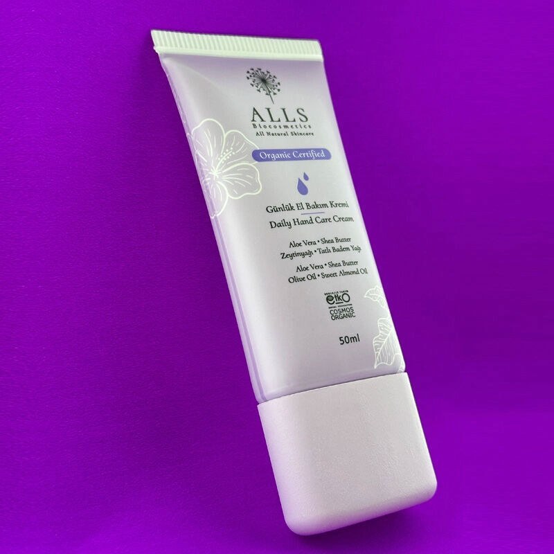 Alls Biocosmetics Günlük El Kremi, zengin içeriği ve hafif formülüyle cildinizi derinlemesine nemlendirir ve besler