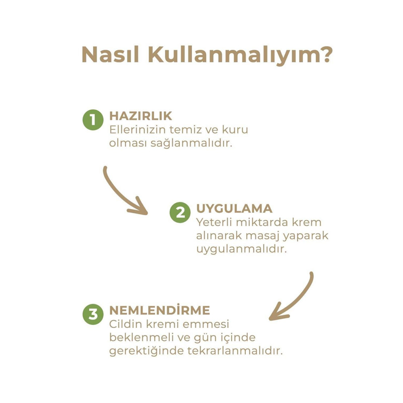 Temiz ve kuru ellerinize yeterli miktarda kremi uygulayın. Nazikçe masaj yaparak cildinizin kremi emmesini sağlayın. Gün içinde ihtiyaç duydukça tekrarlayın.