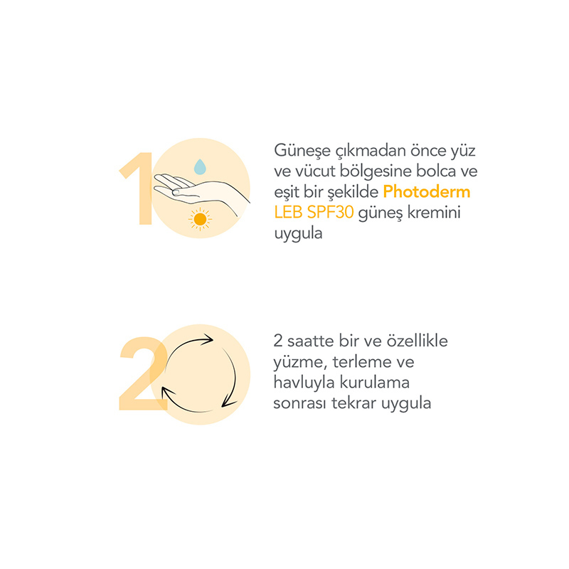 •Güneşe çıkmadan önce yüz ve vücut bölgesine bolca ve eşit bir şekilde uygulayınız.