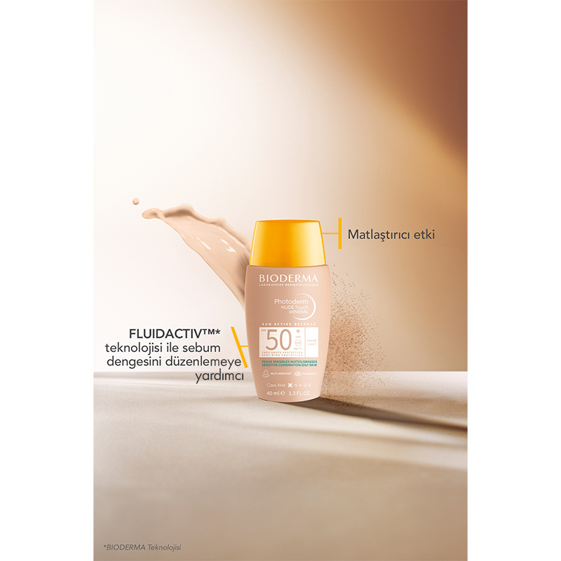 Photoderm Nude Touch Light SPF50+ formülündeki Sun Active Defense patenti sayesinde UVA ışınlarına karşı güçlendirilmiş yüksek teknolojili güneş koruması sağlar. Aynı zamanda cilde yaşlanma karşıtı bakım yapar.