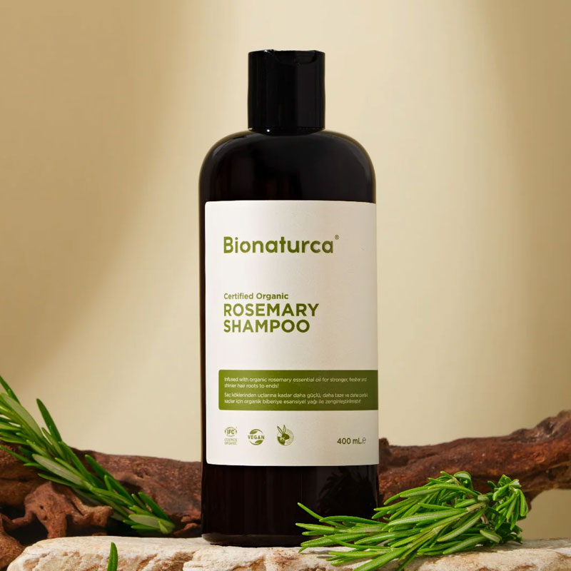 Bionaturca Organik Sertifikalı Biberiye Şampuanı, saç dökülmesini azaltmaya yardımcı olan bitkisel içerikli formülüyle saçları beslemeye ve doğal hacim kazandırmaya yardımcıdır.