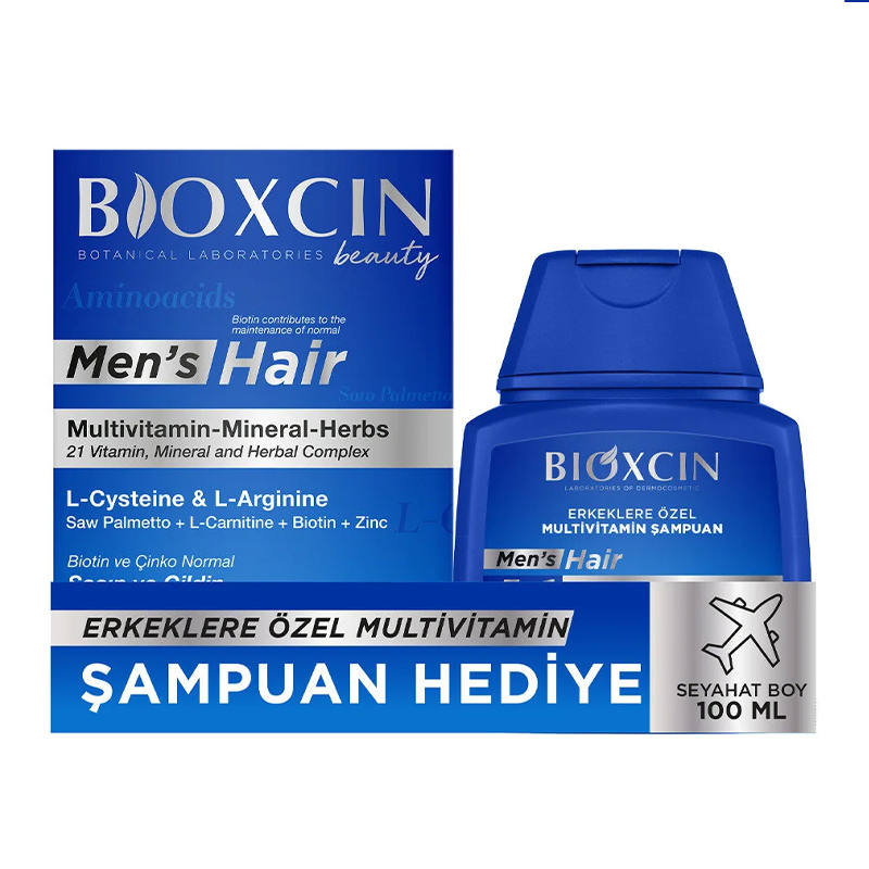 L-Arjinin,L-Sistein ve L-Karnitin İçeren Takviye Edici Gıda ve Seyahat Boy Erkeklere Özel Multivitamin Şampuan