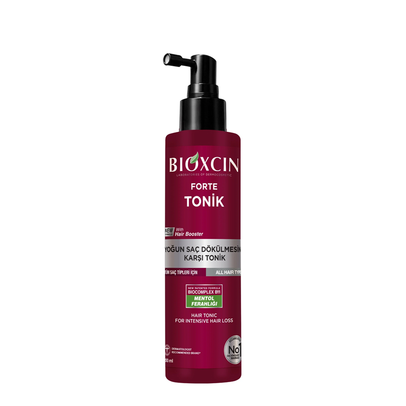 Bioxcin Forte Tonik, yoğun saç dökülmesine karşı saç derisi bakımını desteklemek üzere geliştirilmiş, patentli BioComplex B11® (Alman papatyası, ısırgan otu, civan perçemi, atkuyruğu ve keçiboynuzu) ve Hair Booster (Biotin, kafein, arginin, L-karnitin, çinko, folik asit ve vitamin B12) aktifleriyle güçlendirilmiş yenilikçi formüle sahiptir. Saçları kökten uca besler, saç tellerinin daha dolgun ve güçlü görünmesine yardımcı olur, saça hacimli bir görünüm kazandırır.