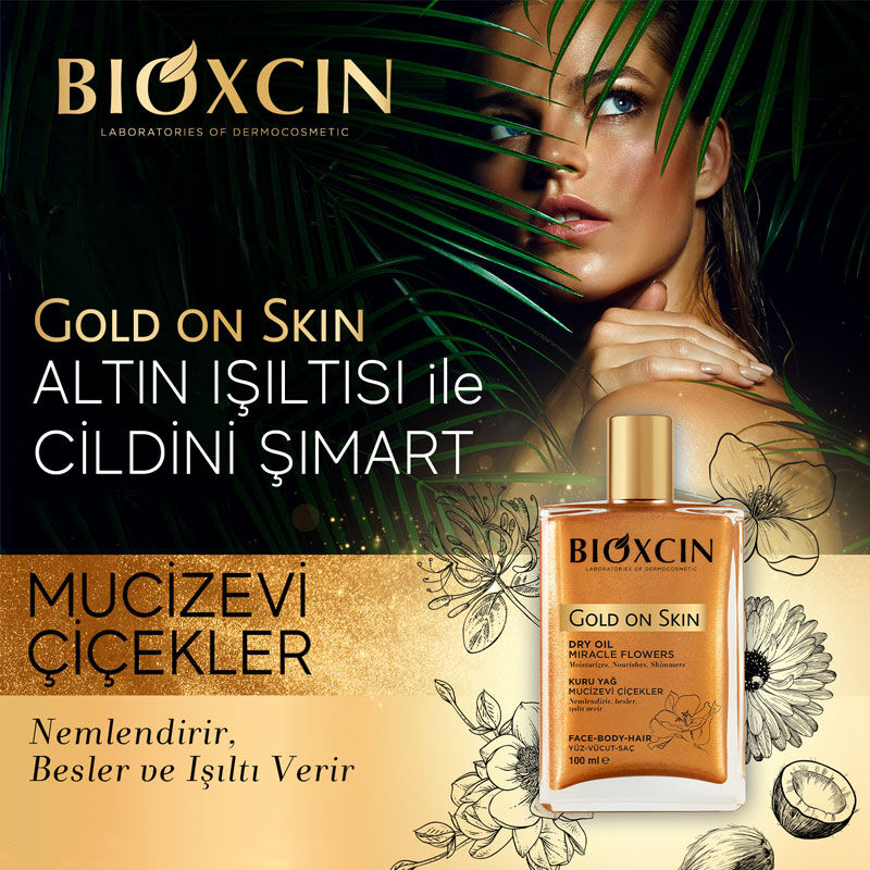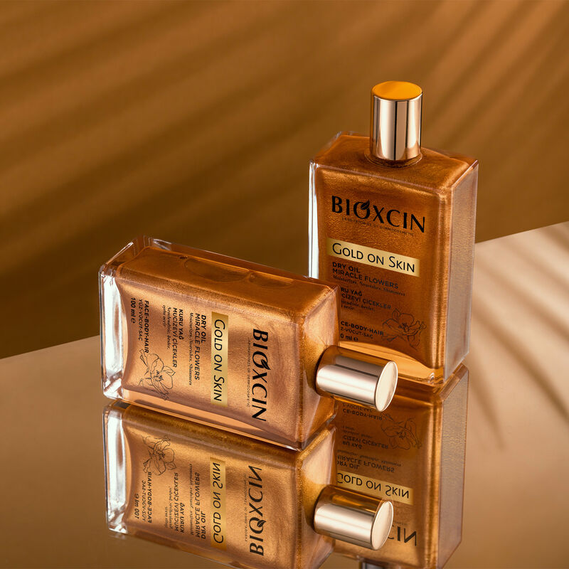 • Bioxcin Gold On Skin Vücut Yağı -Altın-Bronz parıltılı kuru yağ saç ve cilt kullanımına uygundur.