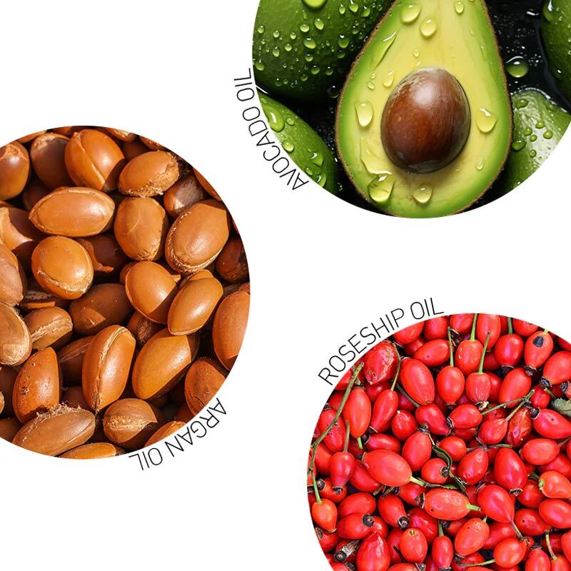 Helianthus Annuus Seed Oil, Sesamum Indicum Seed Oil, Polyglyceryl-3 Caprate, C12-13 Alketh-9, Simmondsia Chinensis Seed Oil, Persea Gratissima Oil, Argania Spinosa Kernel Oil, Vitis Vinifera Seed Oil, Rosa Canina Fruit Oil, Tocopheryl Acetate.