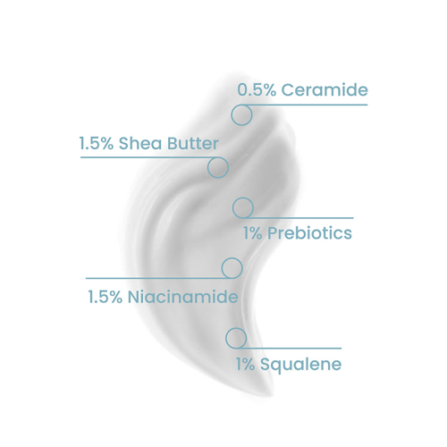 Aqua, Glycerin, Caprylic/Capric Triglyceride, Sodium Acrylate/Sodium Acryloyl Dimethyl Taurate Copolymer, Butyrospermum Parkii Butter, Niacinamide, Cetyl Alcohol, Glycol Stearate, Allantoin, Dimethicone, Squalane, Inulin, Copper Tripeptide-1, Ceramide NP, Sodium PCA, Panthenol, Glyceryl Stearate, Phenoxyethanol, Propylene Glycol, Acrylates/C10-30 Alkyl Acrylate Crosspolymer, Tocopheryl Acetate, Fructose, Ethylhexylglycerin.