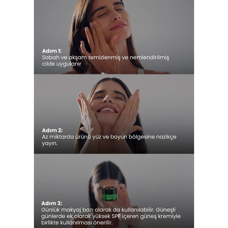 Centella Özü, Seramid, Madecassoside ve Yeşil Çay Özü içeren formülü, cilt tonunun eşitlenmesine yardımcı olurken aynı zamanda cilt bariyerini güçlendirmeye destek olur.