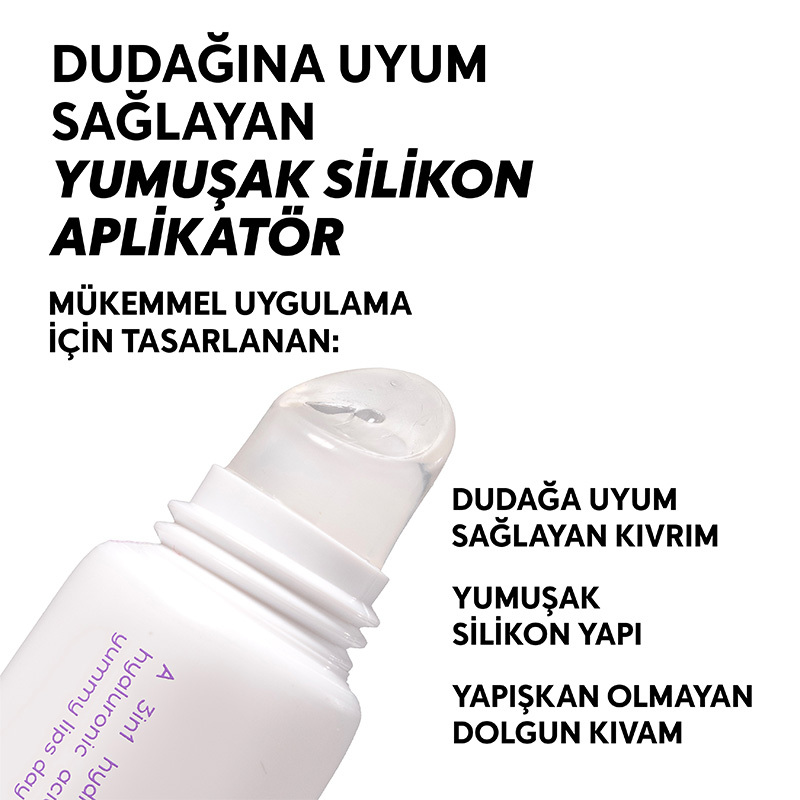 Dudağa uyum sağlayan kıvrımlı yumuşak silikon aplikatörü, ürünü eşit bir şekilde dağıtır, taşırma yapmadan her sürüşte pürüzsüz bir sonuç sağlar.