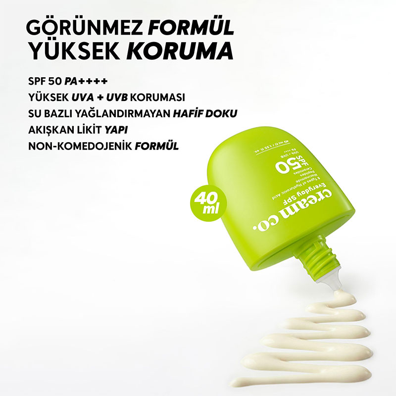 Hafif ve hızlı emilen formülü sayesinde ciltte beyazlık bırakmaz, yağlı bir his oluşturmaz. Günlük kullanımda konforlu bir koruma sağlar.