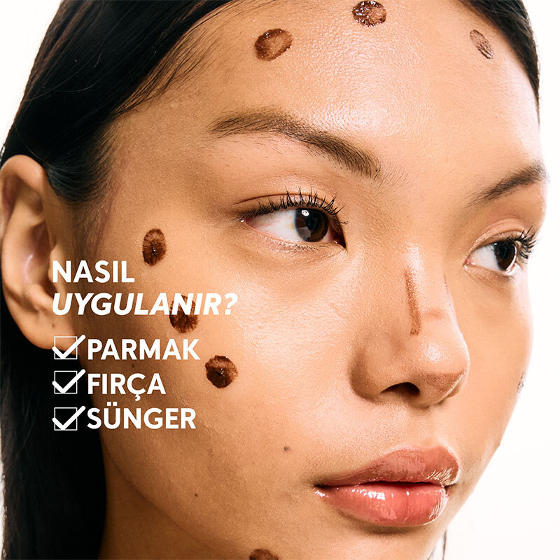 Hafif sıvı krem yağlı ve yapışkan his bırakmayan formülü ile kolayca cilde uyum sağlar.