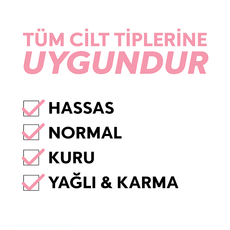 Tüm ürünlerimiz tüm cilt tiplerinin kullanımına uygun formüle edilmiştir.