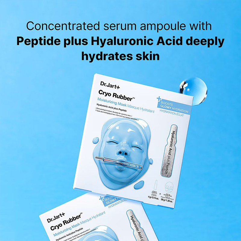 Cildin nem ihtiyacını karşılamaya ve daha canlı bir görünüm kazanmasına yardımcı olmak için geliştirilen Dr.Jart+ Cryo Rubber Moisturizing Mask, iki aşamalı özel bir bakım sistemidir. Set içeriğindeki yoğun Hyalüronik Asit ampulü cildi nemlendirmeyi hedeflerken; serinletici etkili özel kauçuk (rubber) maske, bu nemin cilde hapsolmasına ve aktif bileşenlerin emilimine katkı sağlar. Ciltteki kuruluk kaynaklı gerginlik hissinin hafiflemesine ve cildin daha dolgun, aydınlık bir görünüme kavuşmasına yardımcı olur.Kullanım Şekli: