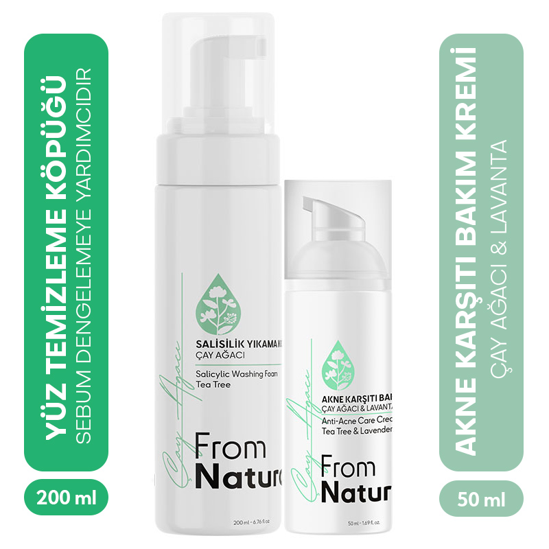 From Natura Çay Ağacı ve Salisilik Asit Yıkama Köpüğü 200 ml-From Natura Çay Ağacı ve Lavanta Akne ve Siyah Nokta Karşıtı Bakım Kremi 50 ml