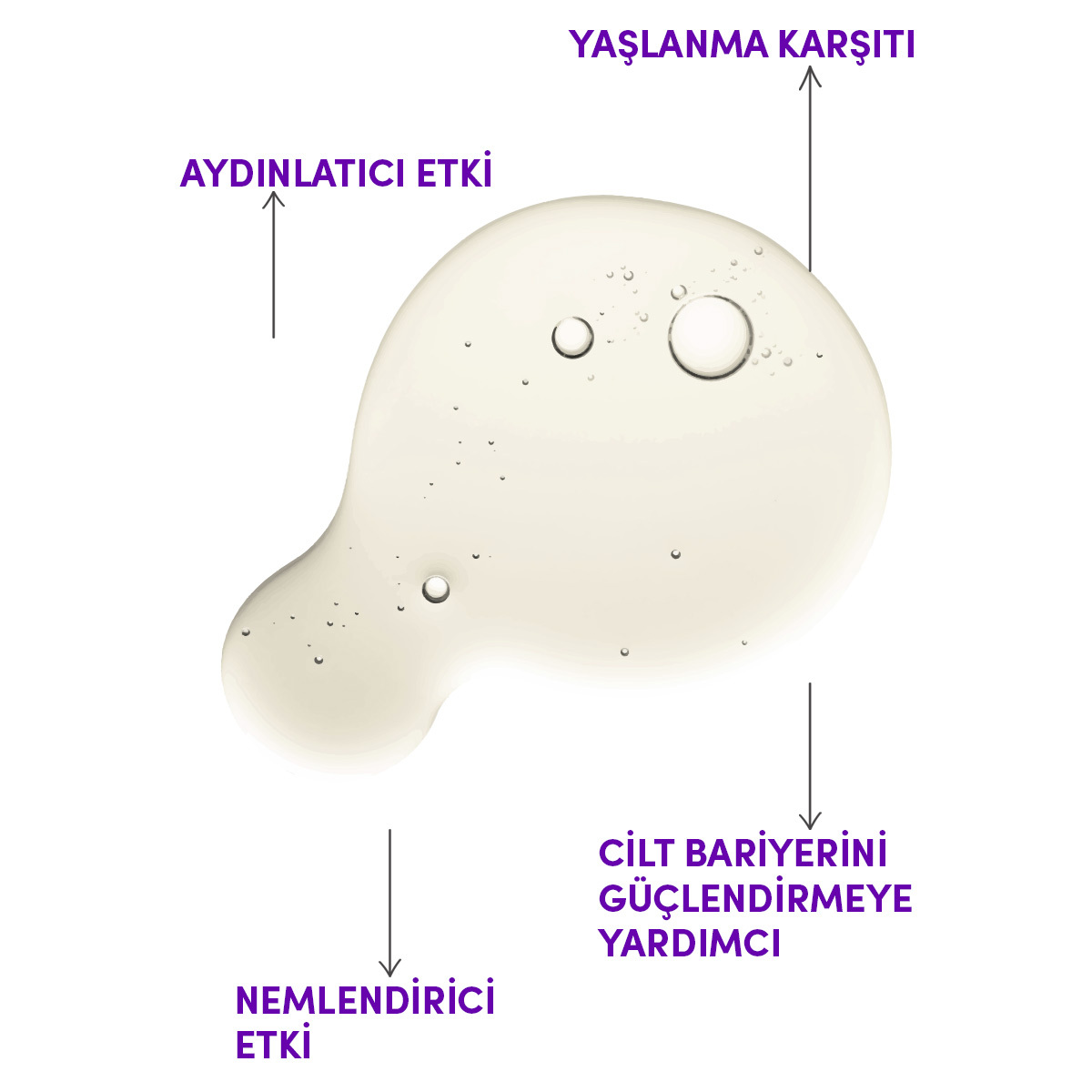 | Faydası | Ciltteki gözenekleri küçültmeyi ve cilt tonu eşitsizliklerini dengelemeye yardımcıdır | Cildin daha pürüzsüz bir görünüme kavuşmasını destekler | Cilde doğal ve ipeksi bir ışıltı verir | Cildi hem aydınlatır hem de nemlendirir |