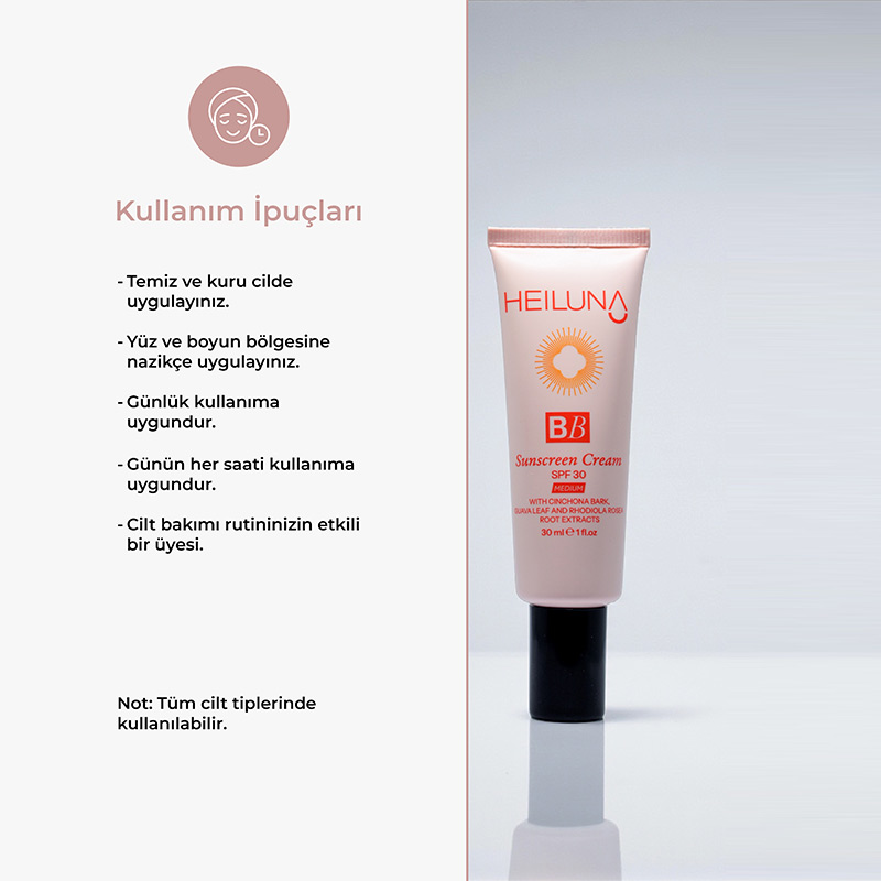 Günlük cilt bakım rutininizden sonra uygun miktarda BB kremi yüz ve boyun bölgesine uygulayın. Daha iyi emilim için nazik tampon hareketlerle cilde yedirin.Gün içinde gerektiğinde tazeleyin.