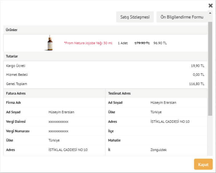 ____Verdiğiniz bilgilerin doğruluğundan emin olduğunuzda Ön Bilgilendirme Formu ve Mesafeli Satış Sözleşmesini okuyup kabul ettiğinize ilişkin kutucukları işaretlemenizin ardından “Siparişi Onayla” butonuna tıklayarak siparişinizi tamamlayabilirsiniz.