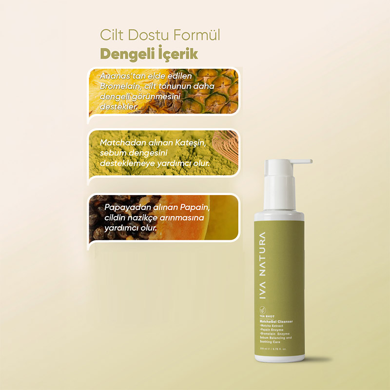 Matcha ve bitkisel içeriklerle geliştirilen bu jel temizleyici, cildi naziikçe arındırmaya yardımcı olurken sebum dengesinin korunmasını destekler.