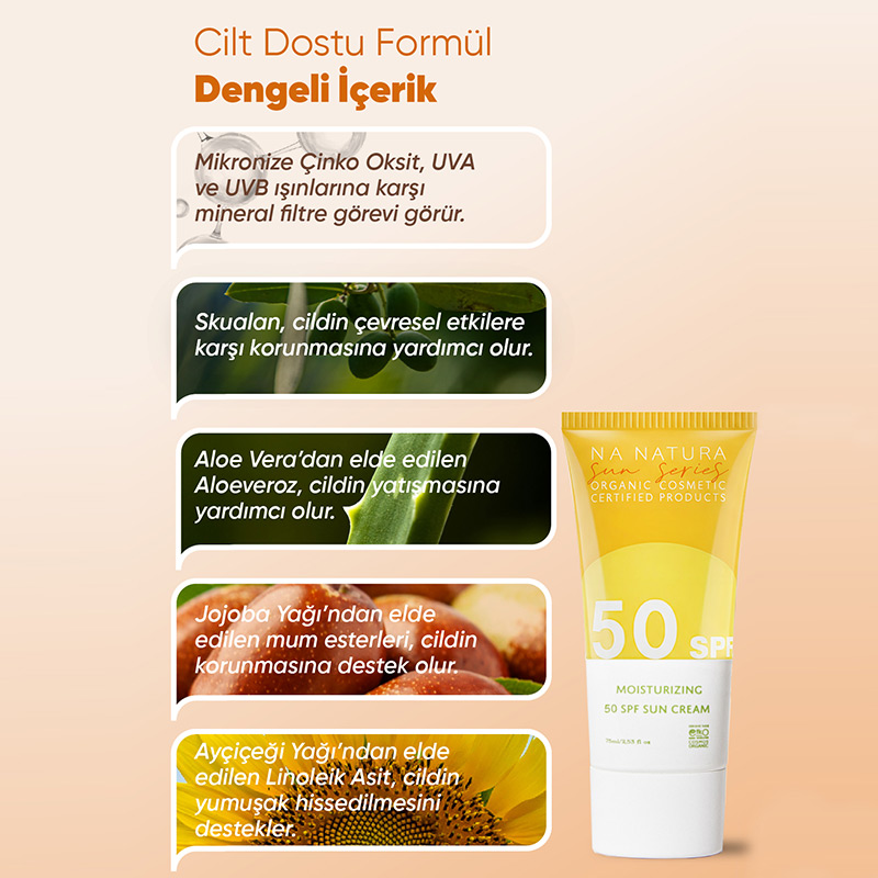 Çinko oksit içeren mineral filtreli yapısıyla SPF 50 seviyesinde UVA ve UVB ışınlarına karşı yüksek koruma sunmaya yardımcı olur ve dengeli bir güneş bakımı sağlar.
