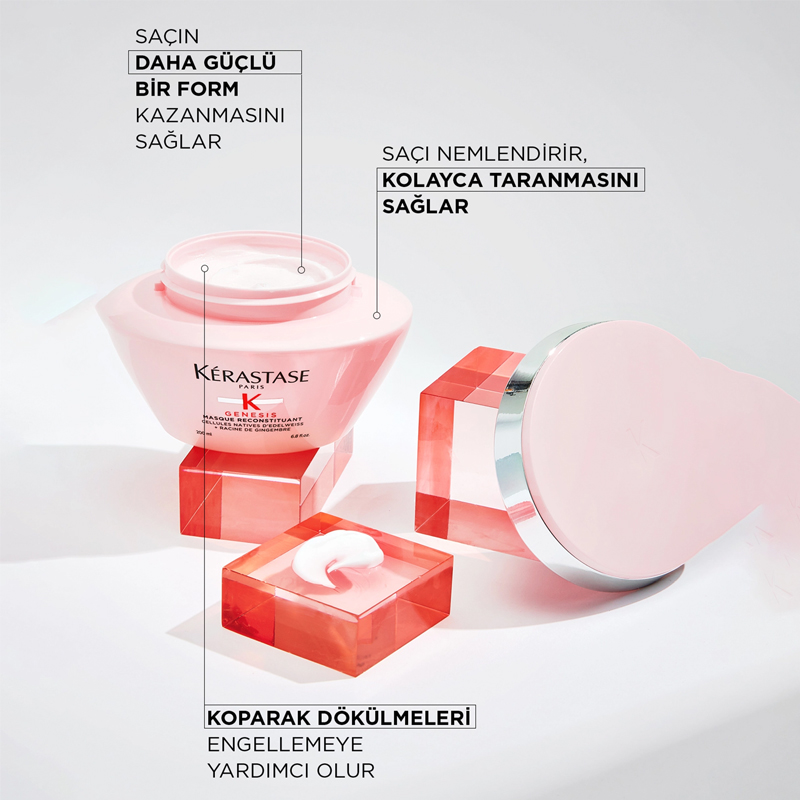 Güçsüz ve koparak dökülmeye eğilimli saçlar için dökülme karşıtı ve güçlendirici maske.