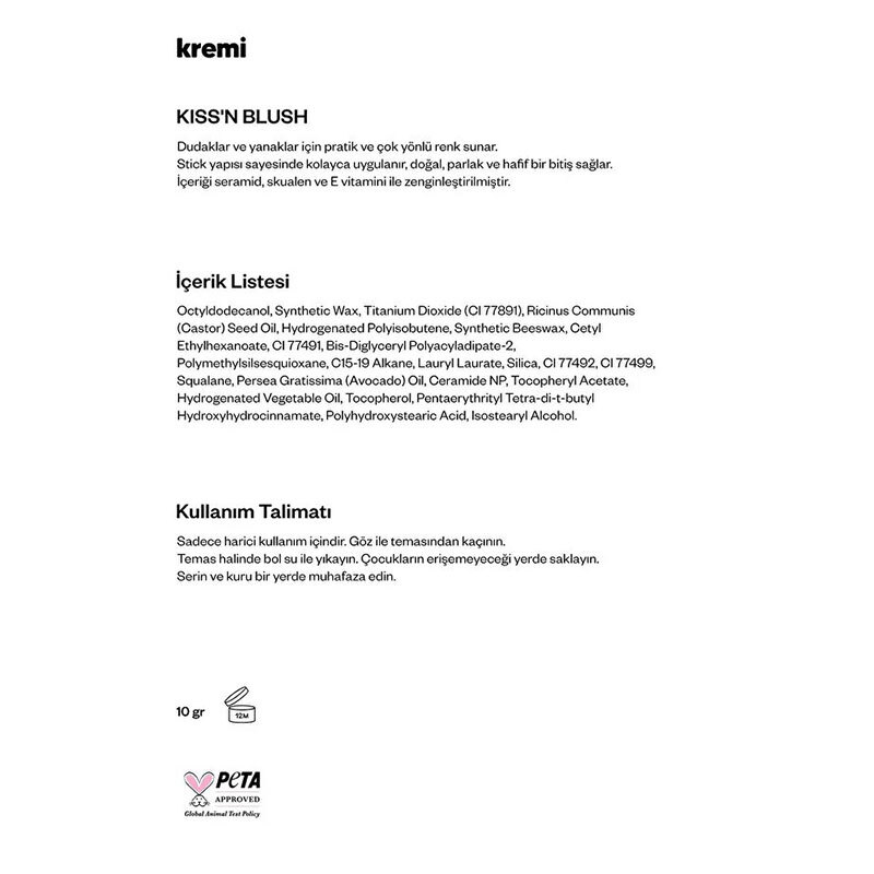 Cilt bakım etkili stick allık, yanak, dudak ve gözlerde çok amaçlı kullanım sunar.
