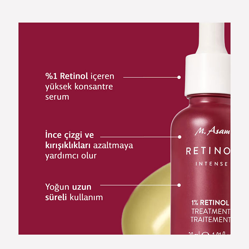 %1 retinol içeren yüksek konsantrasyonlu yoğun bakım ürünü.