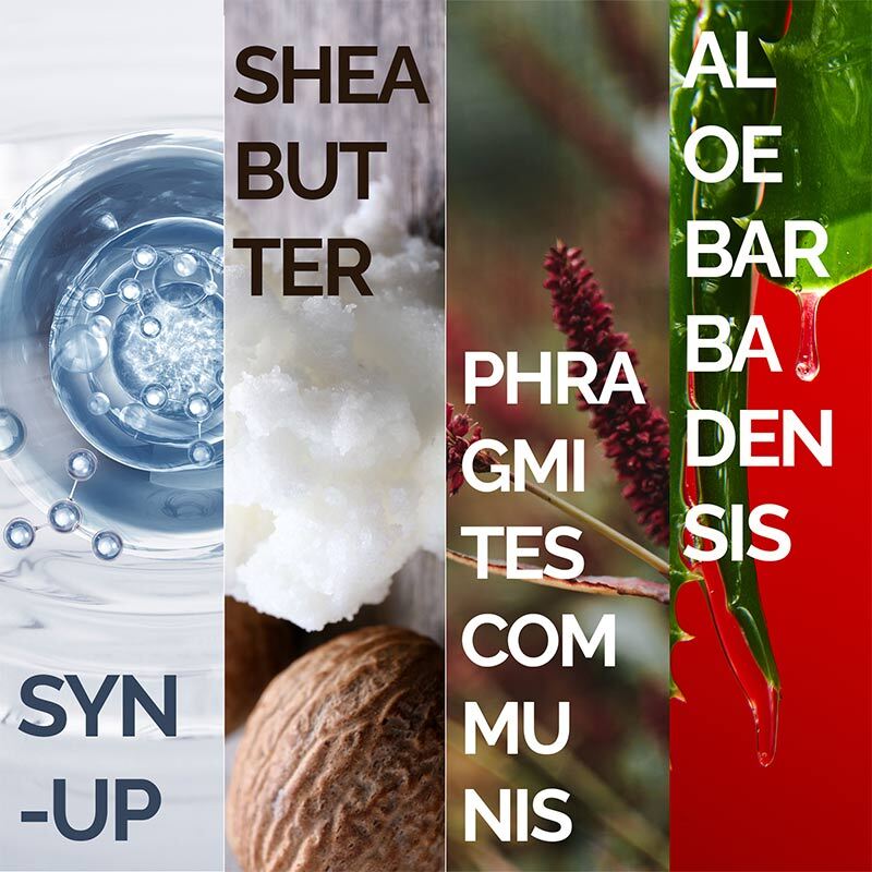 Aqua (Water), Glycerin, Caprylic/Capric Triglyceride, Isopropyl Palmitate, Glyceryl Stearate, Cetearyl Alcohol, PEG-100 Stearate, Sodium PCA, Potassium Cetyl Phosphate, Amidinobenzyl Benzylsulfonyl D-Seryl Homophenylalaninamide Acetate, Butyrospermum Parkii (Shea) Butter, Oenothera Biennis (Evening Primrose) Oil, Dimethicone, Beta-Glucan, Phragmites Communis Extract, Poria Cocos Extract, Phenoxyethanol, Ethylhexylglycerin, Aloe Barbadensis Leaf Juice, Punica Granatum Seed Extract, Bisabolol, Tocopheryl Acetate, Acrylates/C10-30 Alkyl Acrylate Crosspolymer, Xanthan Gum, Sodium Citrate, Sodium Benzoate, Potassium Sorbate, Sodium Hydroxide, Citric Acid.