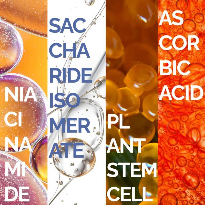 - Lipozom teknolojisine sahip özel formülü, Niacinamide, Oryza Sativa Callus Culture Extract, Saccharide Isomerate, Ethyl Ascorbic Acid, Camellia Sinensis Leaf Extract içeriği sayesinde, siyah nokta ve cilt eşitsizliklerine karşı mücadele eder, cildin yağ dengesini düzenlemeyi destekler.