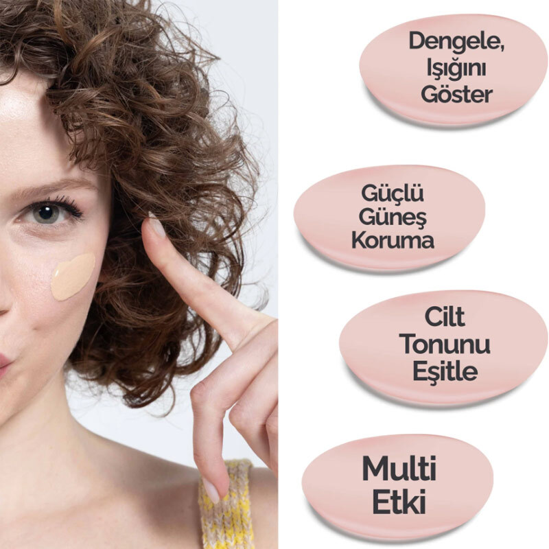 Kapatıcı özelliğiyle cildin canlı görünümünü destekler.