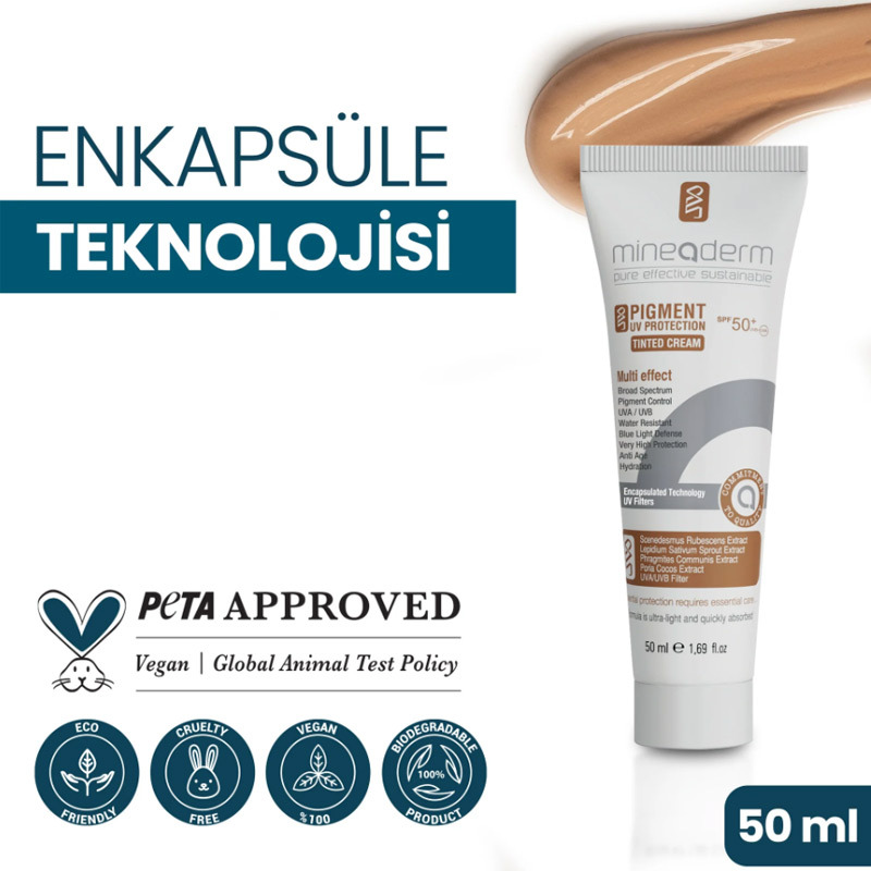 Pigment UV Protection Tinted Cream SPF 50+, güneş ışınlarından kaynaklanan erken yaşlanma belirtileri ve cilt lekelenmelerine karşı etkili bir koruma sağlamak üzere formüle edilmiştir.