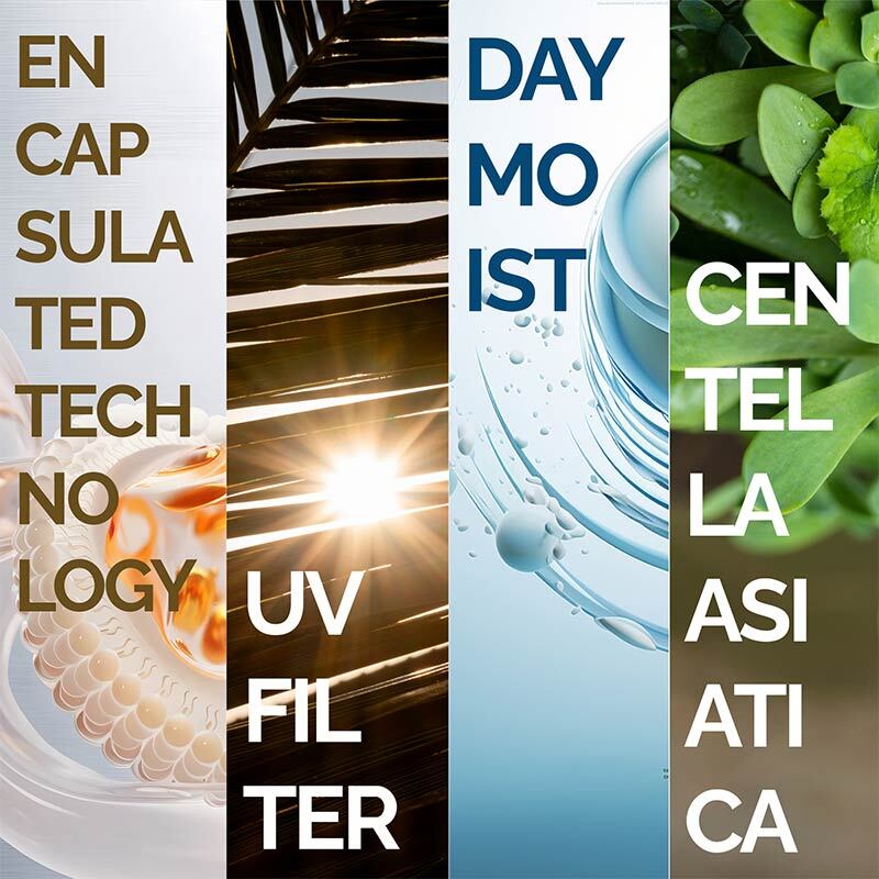 Aqua, Cyclopentasiloxane, Caprylic/Capric Triglyceride, Glycerin, Isononyl Isononanoate, C12-15 Alkyl Benzoate, Titanium Dioxide/CI 77891, Glyceryl Stearate, PEG-100 Stearate, Propylene Glycol, Potassium Cetyl Phosphate, Dimethicone, Diethylamino Hydroxybenzoyl Hexyl Benzoate, Ethylhexyl Triazone, Propanediol, Bis-Ethylhexyloxyphenol Methoxyphenyl Triazine, Dimethiconol, Behenyl Alcohol, Lecithin, Glycine Soja Sterols, VP/Eicosene Copolymer, Scenedesmus Rubescens Extract, Pentylene Glycol, Phenoxyethanol, Ethylhexylglycerin, Sodium PCA, Cetearyl Alcohol, Hydrolyzed Corn Starch, Beta Vulgaris Root Extract, Butylene Glycol, Acrylates/C10-30 Alkyl Acrylate Crosspolymer, Centella Asiatica Leaf Extract, Sodium Acrylates Copolymer, Butyrospermum Parkii Butter, Tocopheryl Acetate, Parfum, Adansonia Digitata Seed Oil, Aloe Barbadensis Leaf Juice, Xanthan Gum, Hydroxyacetophenone, Tocopherol, Chlorphenesin, Potassium Sorbate, Citric Acid, Sodium Benzoate.