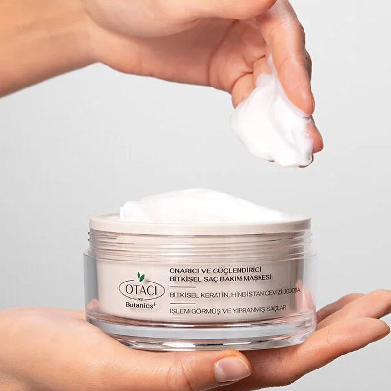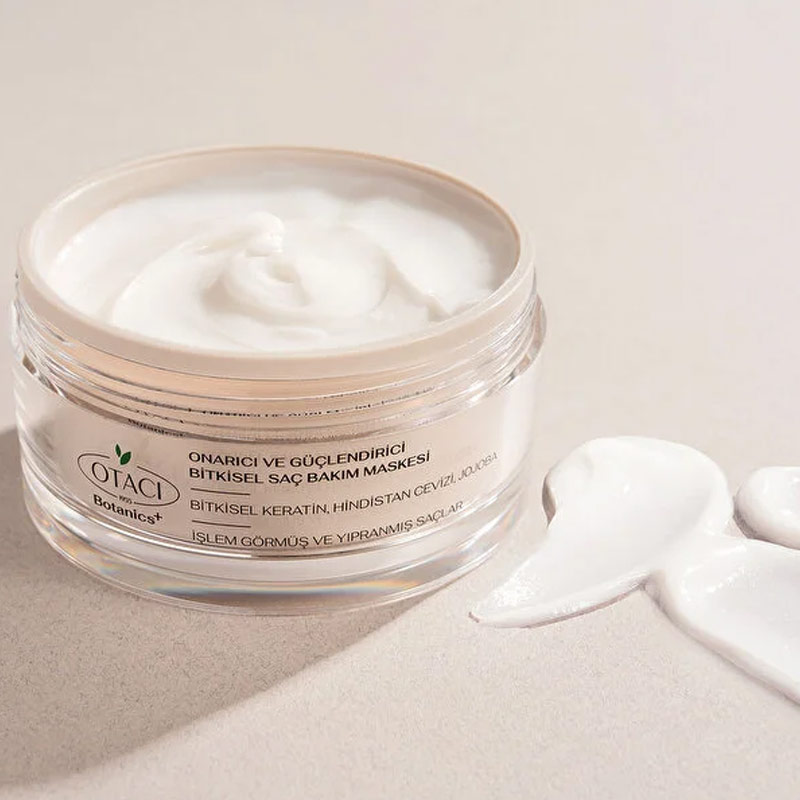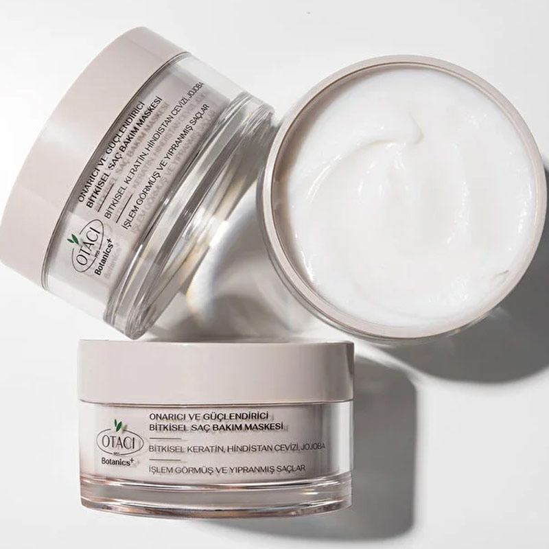 Otacı Botanics+ Güçlendirici Bitkisel Saç Bakım Maskesi, yıpranmış ve işlem görmüş saçlar için özel olarak geliştirilmiş formülüyle saçların canlı ve pürüzsüz görünmesine destek olur.