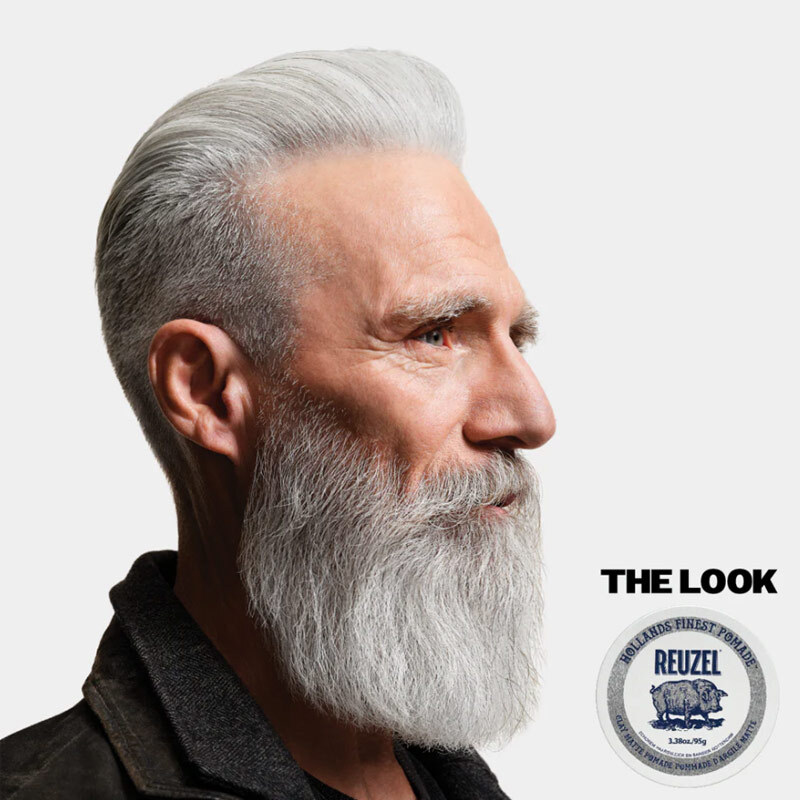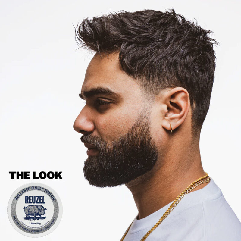 - REUZEL® Kil Mat Pomad, gerçek mat bir bitişle dokunulabilir, orta tutuş sağlar.