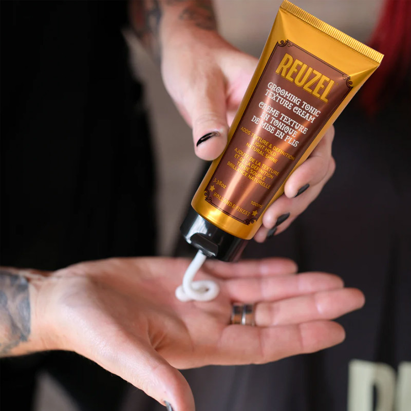 REUZEL® Grooming Tonic Texture Cream, çoğu saç tipi için zahmetsiz çok yönlülük sunan hafif bir şekillendirici kremdir.