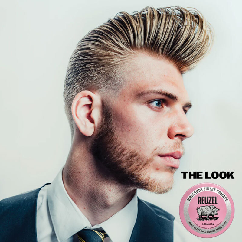 Reuzel Pink Pomade Grease, balmumu bazlı formülü sayesinde saçta topaklanma yapmadan kolayca uygulanır.