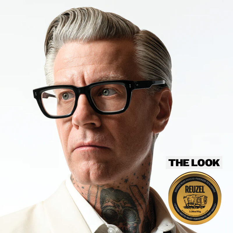 Reuzel x Liquid Death Severed Head Clay Pomade, Reuzel’in ikonik formüllerinden biri ile Liquid Death Mountain Water birleşerek oluşturulmuş sınırlı üretim özel bir kil bazlı pomaddır.