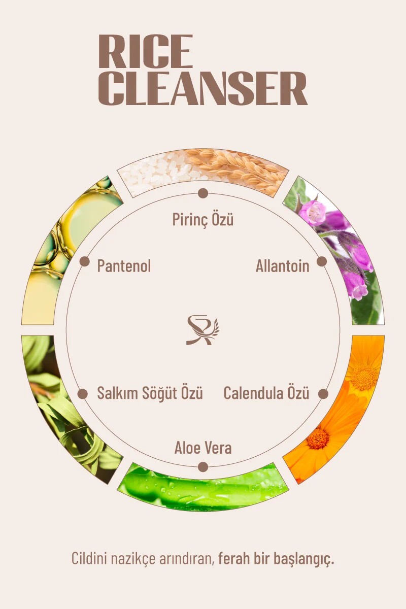Pirinç özü ile formüle edilmiş bu nazik yüz temizleyici, cildinizi kurutmadan gün boyu biriken kir, makyaj kalıntıları ve fazla yağı arındırmayı hedefler. Cildin doğal nem dengesini koruyarak temizleme sonrası ferah ve yumuşak bir his bırakır.