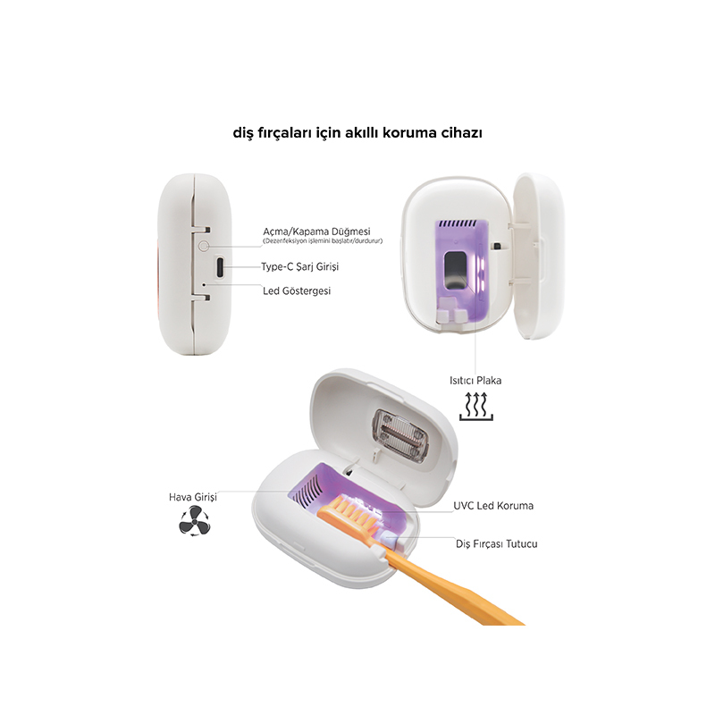 Fırçanızı temiz, kuru ve hijyenik koşullarda saklamanıza yardımcı olan akıllı bir sistem.