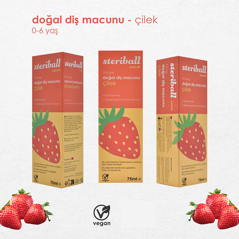 Steriball Çocuk Diş Macunları; ağız sağlığını, çevremizi ve ağız bakımına ihtiyacı olan çocukları önemseyen diş hekimleri tarafından geliştirilmiştir.