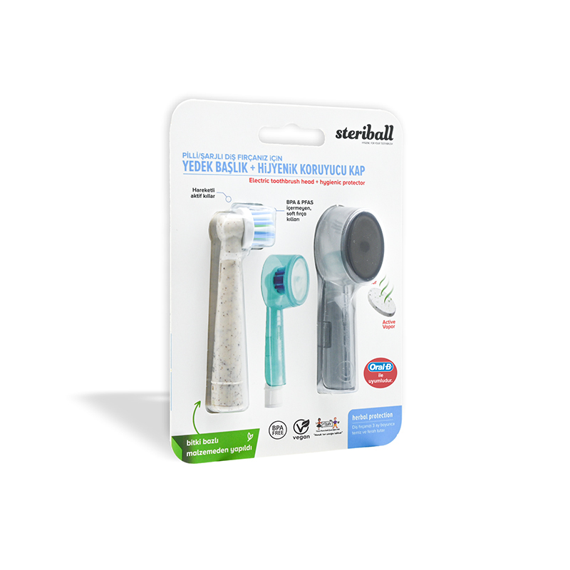 Streriball Pilli Şarjlı Diş Fırçanız için Yedek Başlık + Hijyenik Koruyucu Kap
