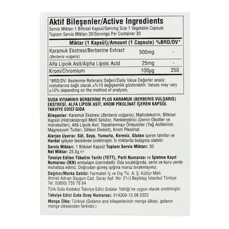 Suda Vitamin Berberine Plus Karamuk Ekstresi 30 KapsülÜrün Markası: