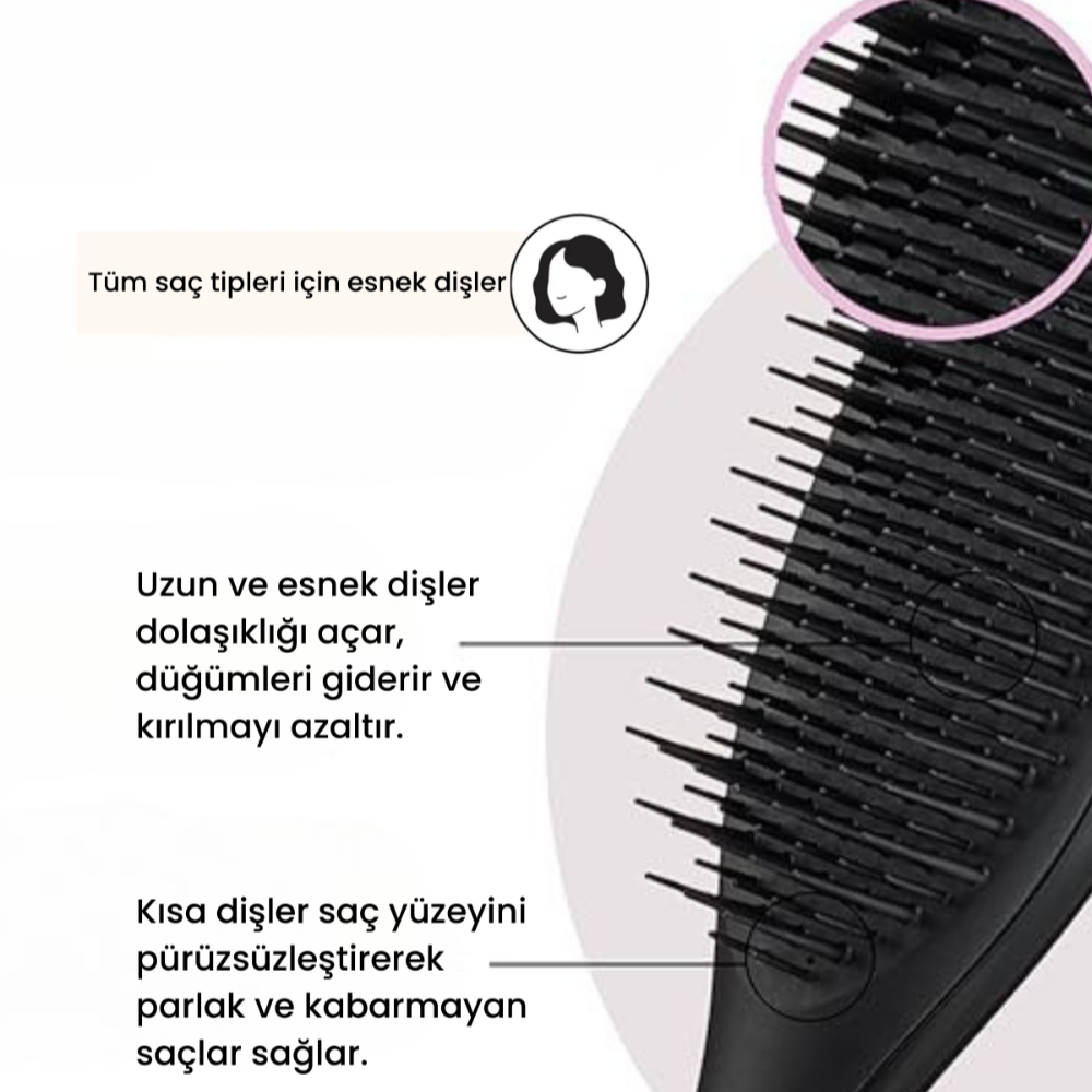 - 325 benzersiz ve esnek dişÇekmeden veya çekiştirmeden düğümlerin üzerinde esnerSüper saç temizliği için şampuanın içinden geçmek için idealdir