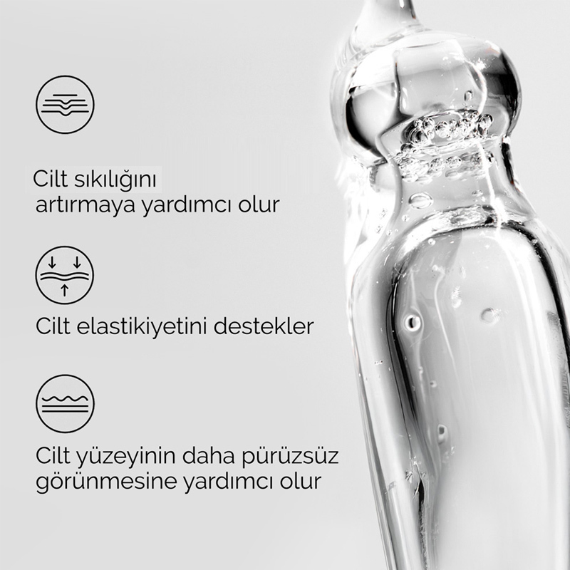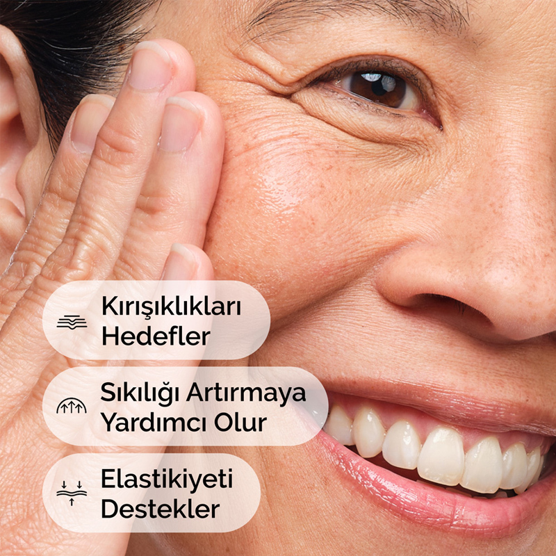 • Kaz ayağı görünümüne karşı cildin elastikiyetini ve sıkılığını artırmaya yardımcı olur.