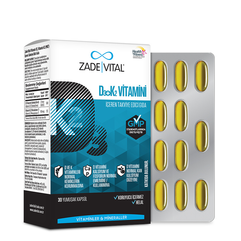 Zade Vital D3 + K2 Vitamini İçeren Takviye Edici Gıda 30 Yumuşak Kapsül